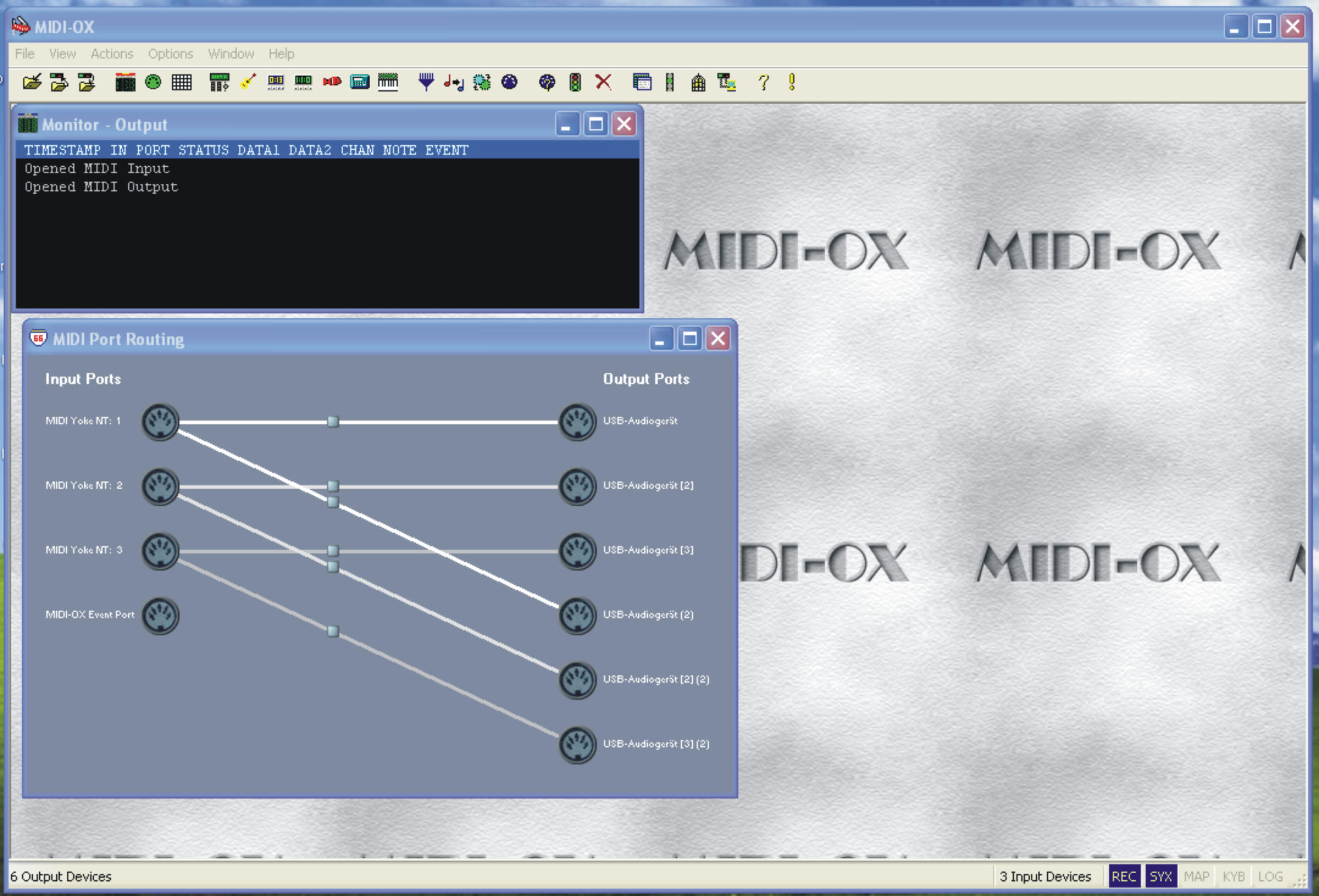Midi yoke is a virtual midi port and midi ox can split the midi out of your